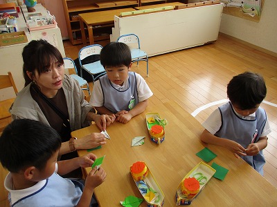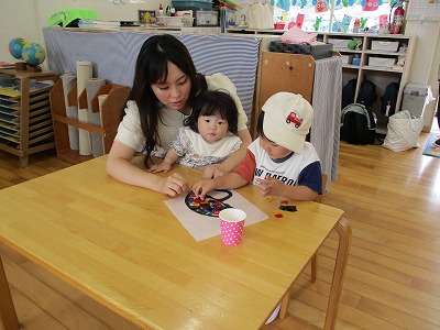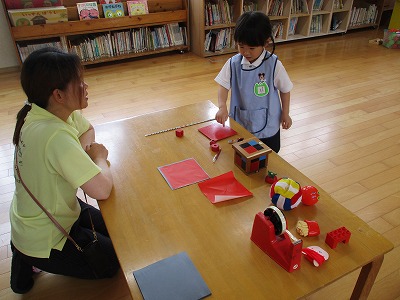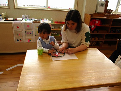 今日はモンテッソーリのおしごととリトミックの参観がありました。