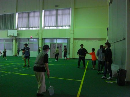 体操のお兄さんによる 楽しい準備運動から始まり、ドッジボールやバレー、バドミントンなど