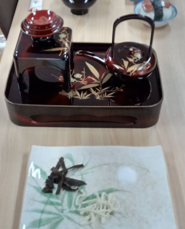 次に、塩こんぶ、裂きイカ、塩を食べます。(無病息災を願って)