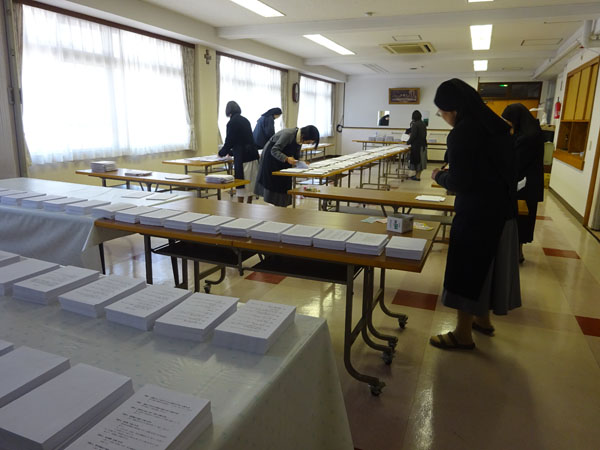 製本は管区本部と修練院のシスター達と修練者と一緒に