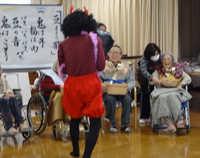 元気な声で豆まきをしました。