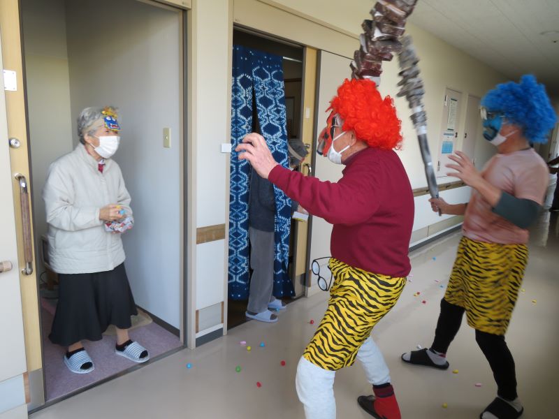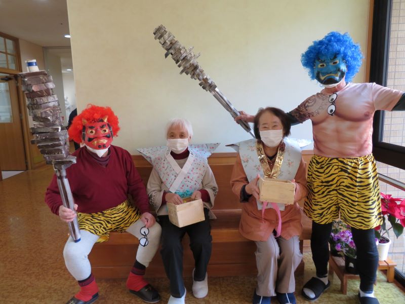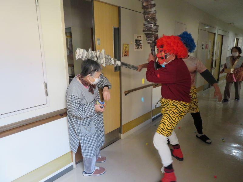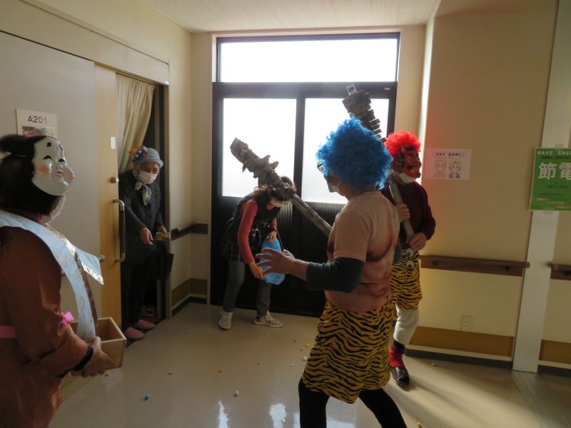 エントリー 節分2023 2023/02/03 15:28 まなざし あっという間に1月が終わり 今日は節分の日。 お昼の食事は恵方巻(海苔巻き・たまご巻き) 午後から豆まき。 あら 赤鬼さん ピアノを弾いてますねえ 見られてしまったですなあ!そろそろ行くか ちょっと記念撮影 青鬼はマッチョですねえ!鍛えたのね。 福娘は年女のお二人です。 いざ! わあ やられた! まあまあ! 福が優勢のようです。 青鬼さん 一時休止? 鬼は外!鬼は外! きましたね!さあやっつけますよ。 あれ! なんだか優しそうな赤鬼さん。 楽しい豆まきのひと時でした。今年もたくさんの福で幸せでありますように!❣ この記事のURL