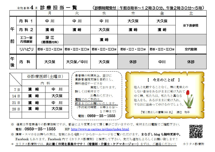 今月の担当医(クリックしてPDFを表示↓)