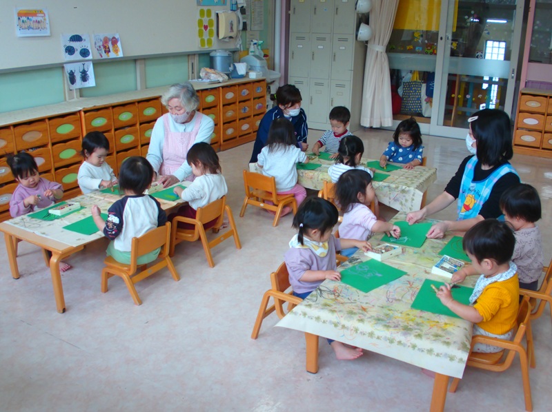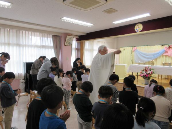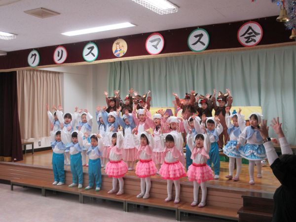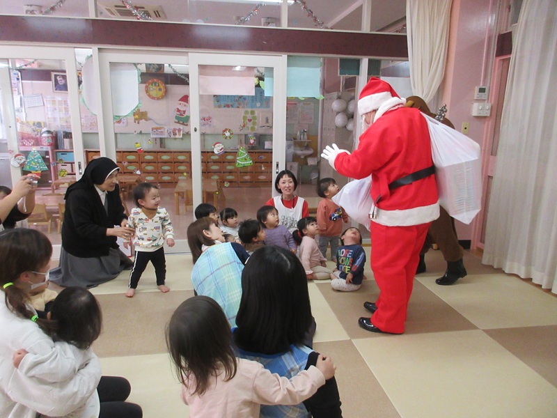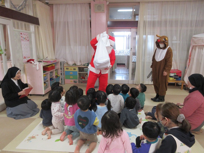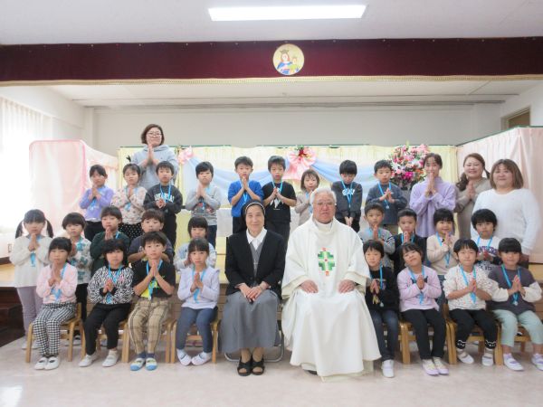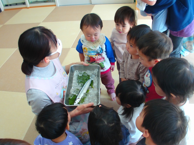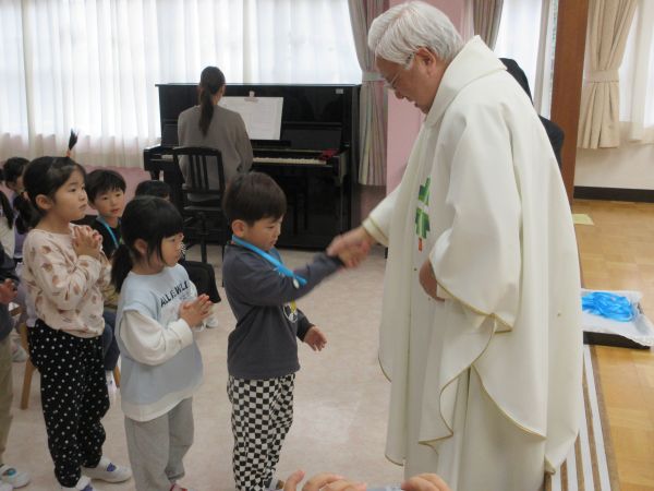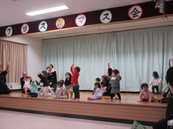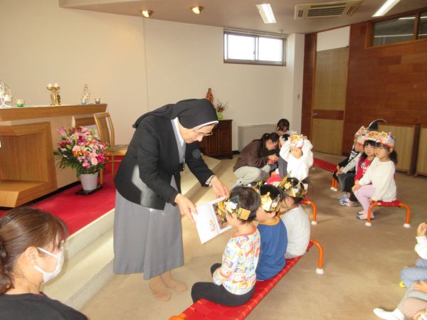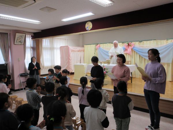 今日、お誕生会に参加した子どもたちは園長先生の言葉に頷いたり