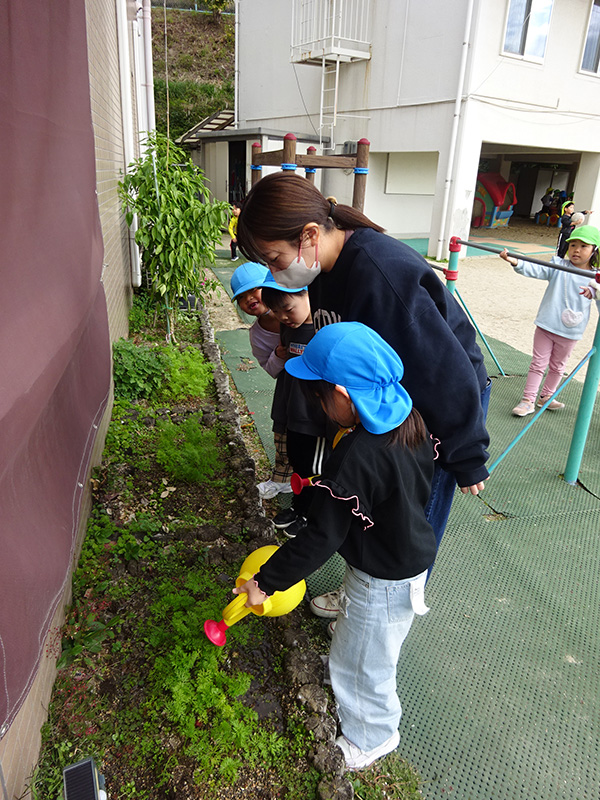 聖心保育園では、毎日、神様、マリア様にお祈りをしています。日々の生活の中で子どもたちは、神様、マリア様を身近に感じながら過ごしているので、優しい子どもたちばかりです。そんな子どもたちの成長を見守ることができ、また、私自身子どもたちと共に成長することができるので嬉しく思っています。