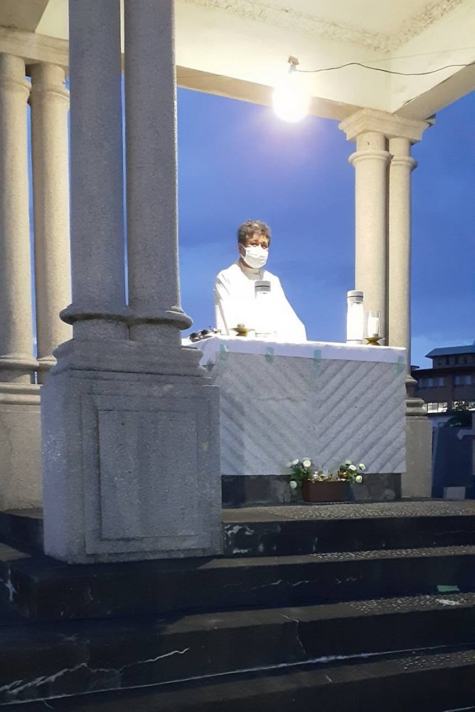有難いことに、今回も日向学院より数名の女子生徒さんたちを同伴して中田神父様が参加して下さいましたので、最後に神父様から参加者へ、締めくくりのお言葉と共に神様の祝福をいただきました。