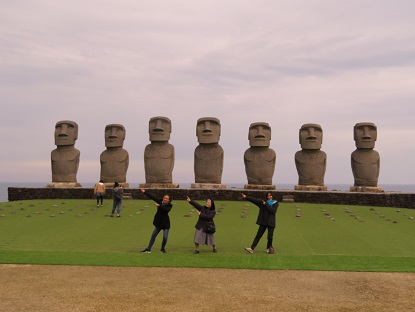 2月3日 宮崎名所「サン・メッセ、青島」ー5ヶ月間の体験学習を終え、最後に、モアイ像と戯れたり、平和の鐘を鳴らしながら世界平和を祈りました。またカリタスの園のゆかり地、青島を潮風を感じながら一周しました。