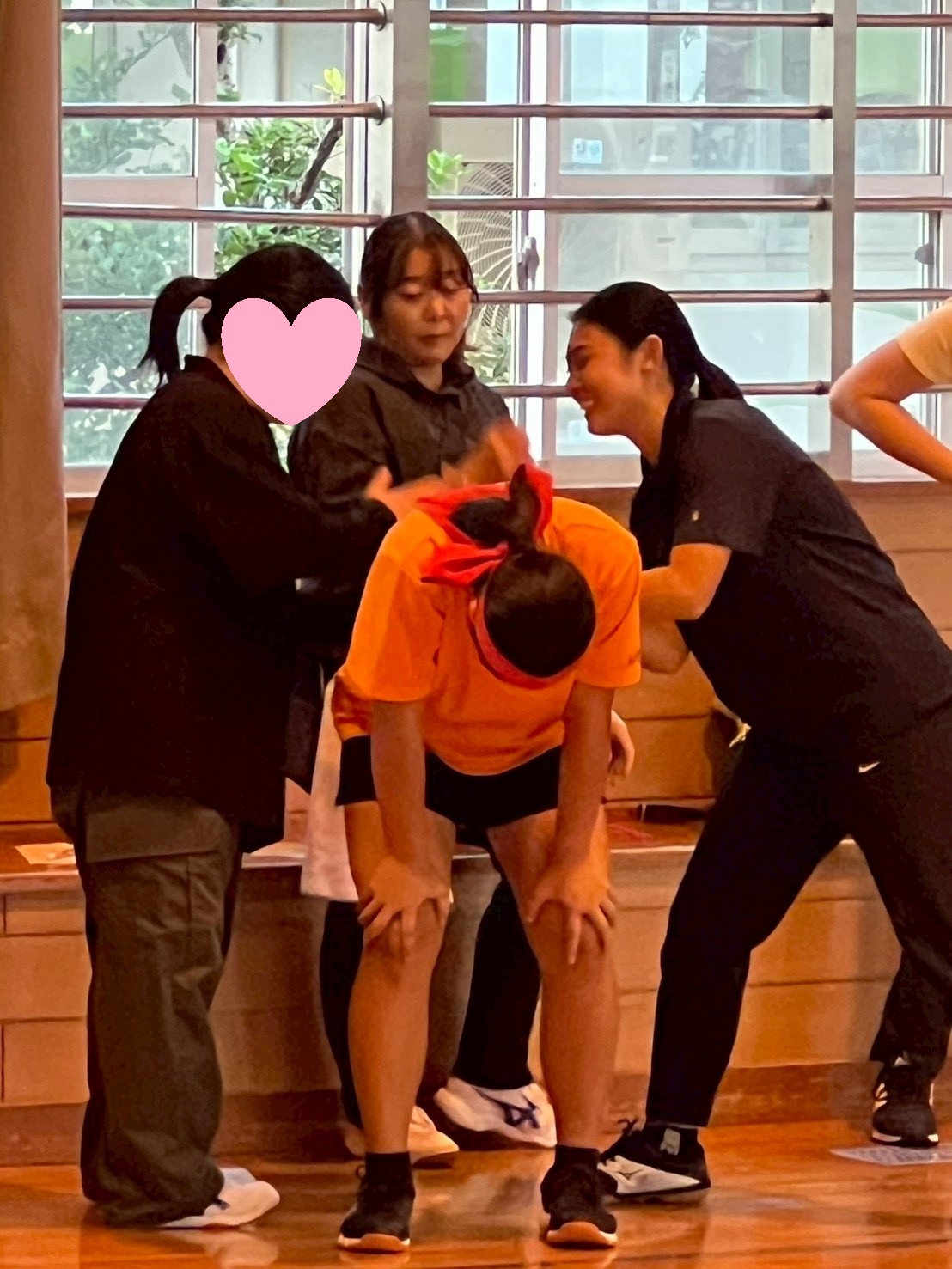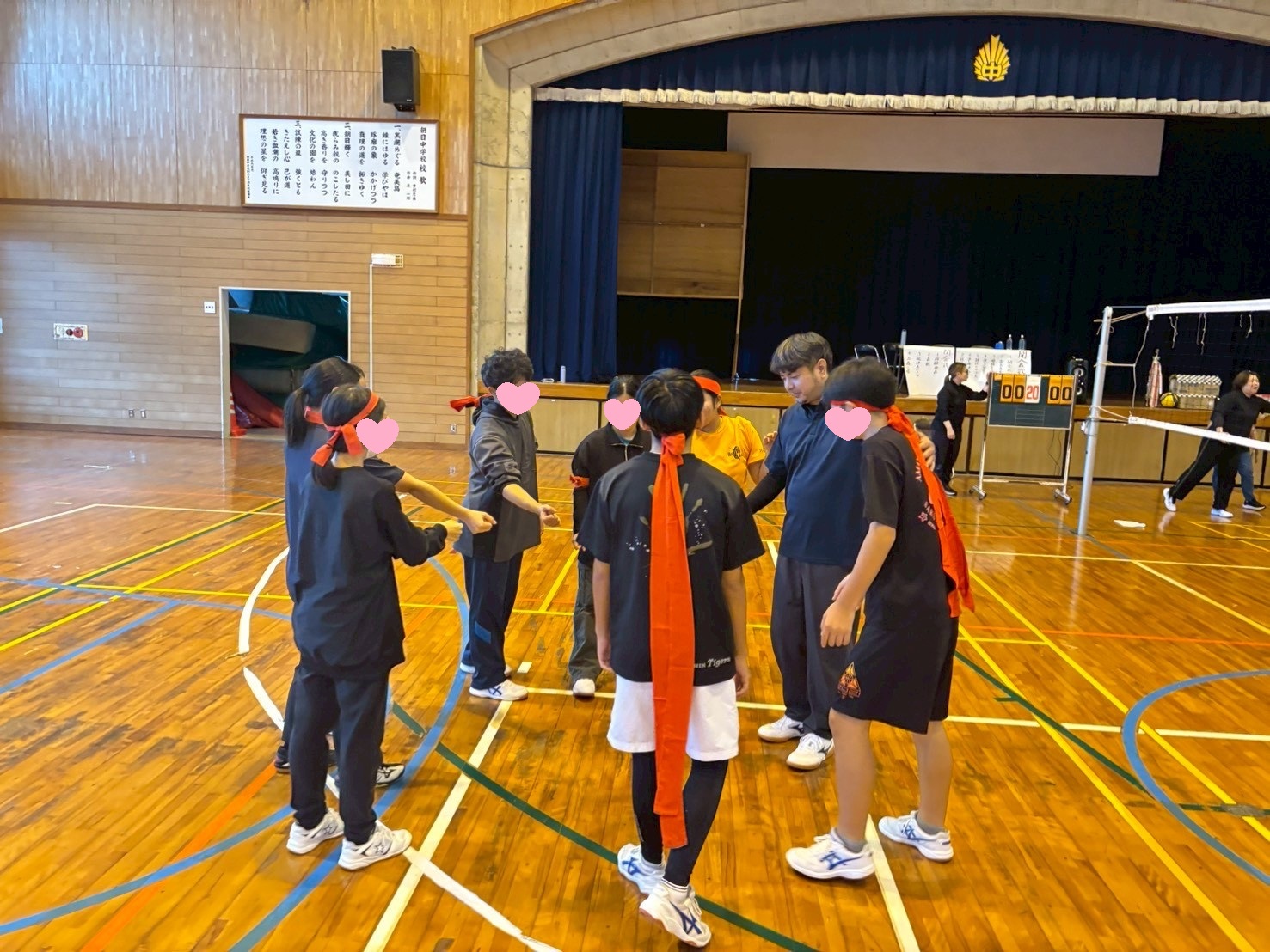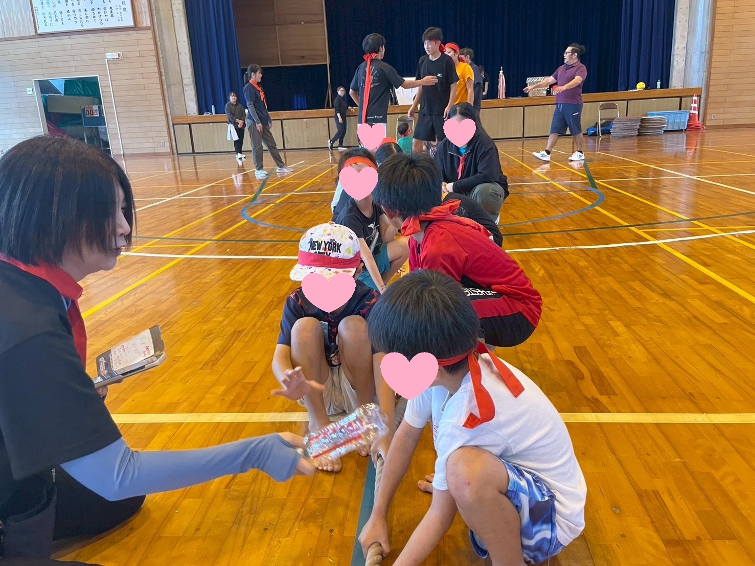 中高生は、バレーボールを行いました。紅組・白組に分かれて
