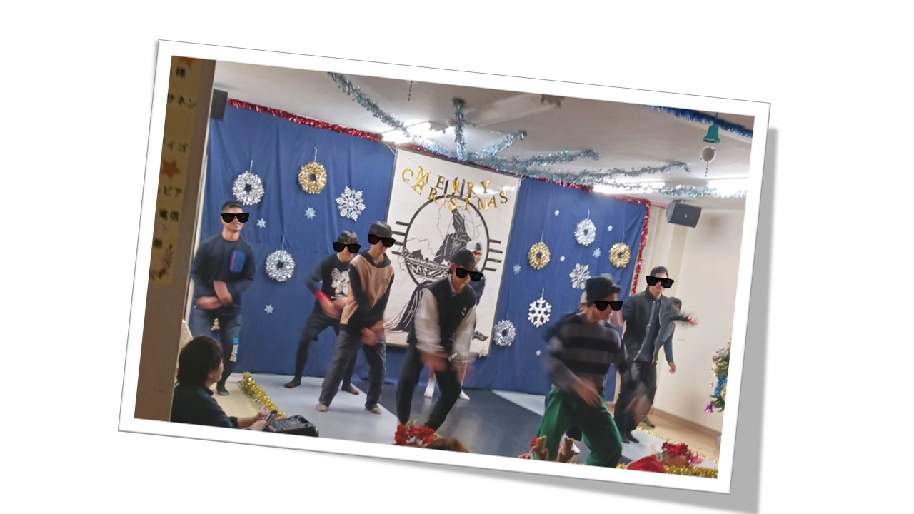職員のギターにあわせて歌声と、3人トリオで愉快なダンスの披露をしてくれました。