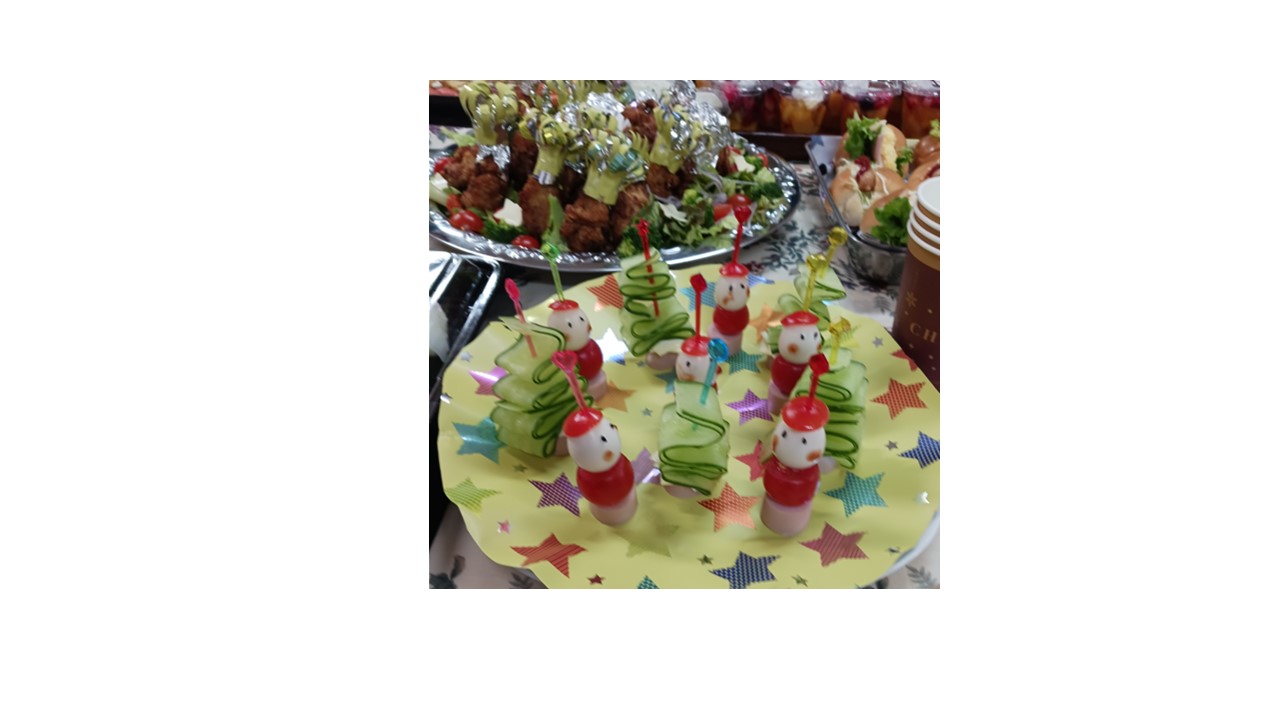 ミニトマトとウズラの卵で作ったサンタさんの人形は、とってもかわいくて食べるのがもったいなかったです。でも、しばらく眺めた後にしっかり頂きました。