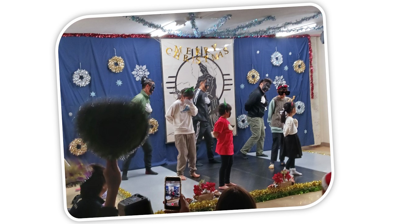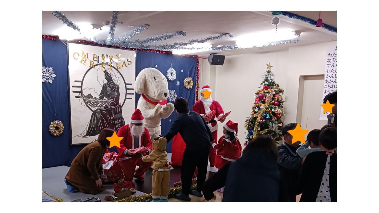 イオンからサンタさんとワオンくんが駆けつけてくれて楽しい時間になりました。サンタさん、ワオンくんありがとうございました。ワオンくんはかわいくて、あたたかかったです。