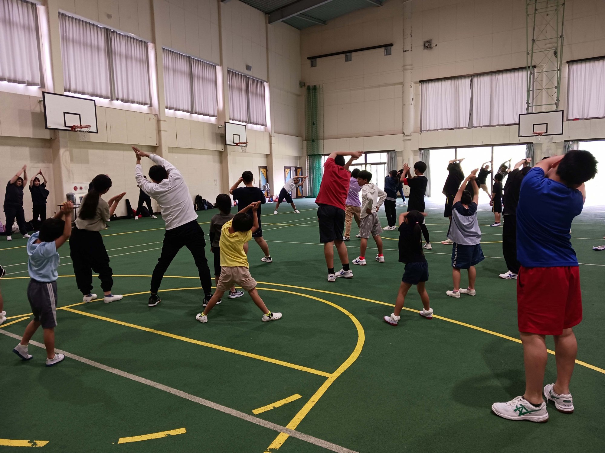 奄美看護福祉専門学校の体育館をお借りしての歓迎遠足
