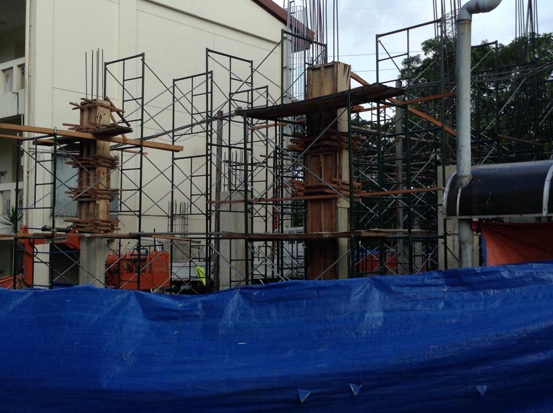 既存の2つの建物を繋げ、1階だけだった食堂に2階を付ける工事です。