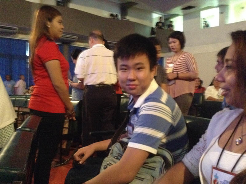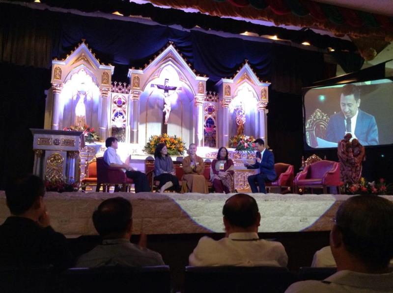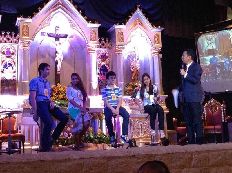 5月14~16日まで、マニラでフィリピン司教協議会主催で、「家族のアジア大会」が行われていました。その最終日の今日の午前中のプログラムで、私たちの学校の高校生で韓国人のジウォン君が最前列に司教様方、数百名の参加者の前でインタヴューを受けました。
