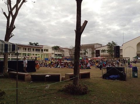 今晩はスカイシネマと称し、運動場で映画を楽しんでいるところです。