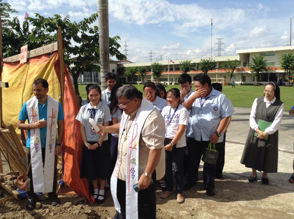 先週、延期された祝別式が今日行われました。生徒会役員たちと数名の先生たちとともに炎天下の中、祈りを捧げました。