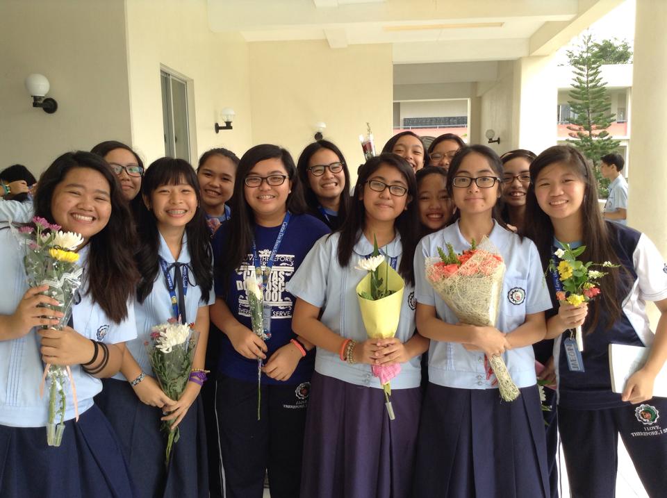 朝から、花束をもった生徒が続々とやってきます。