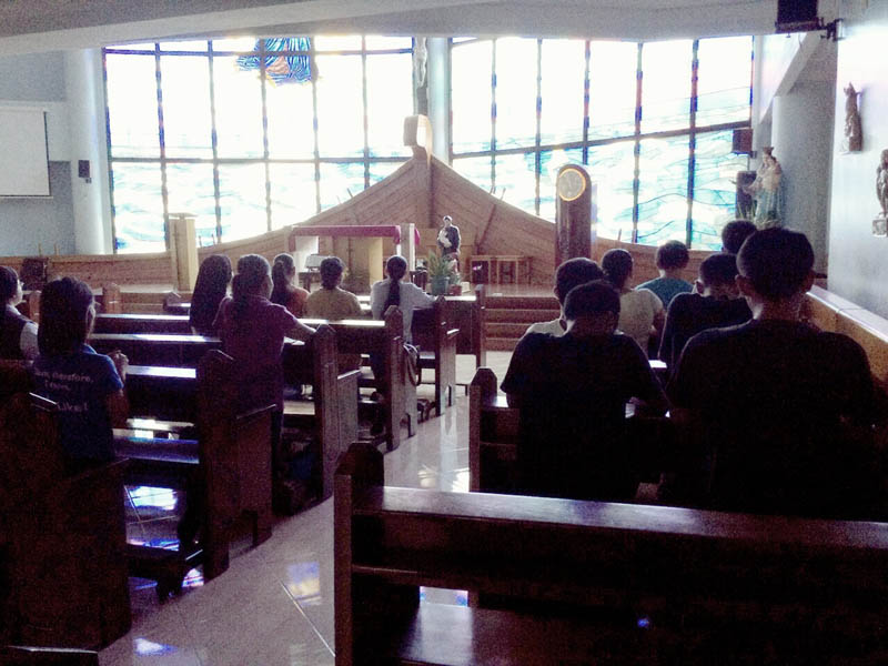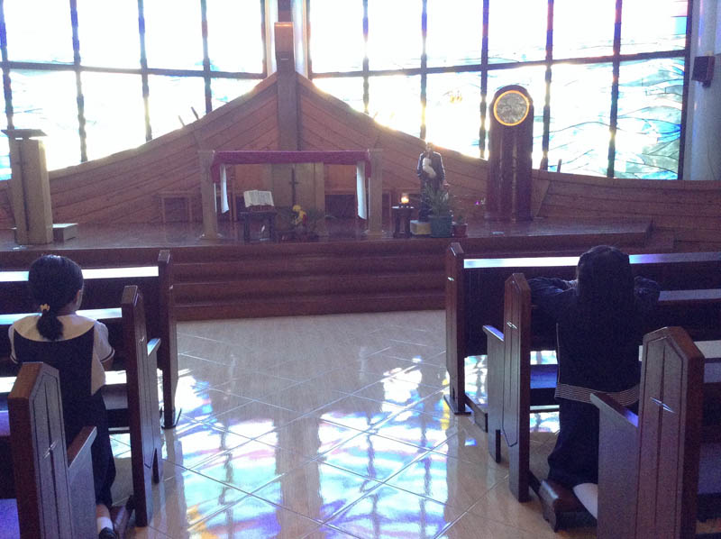 いつものことですが、生徒たちは毎朝真剣に祈っています。