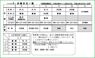 今月の担当医師と時間割