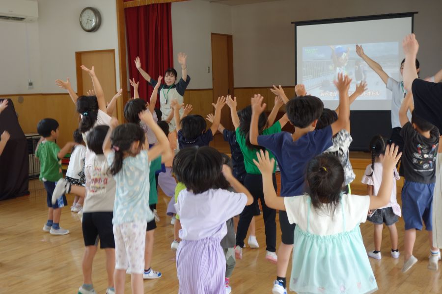 保護者の方も一緒に環境教育に参加して、最後は「リサイクルの体操」で体を動かしました。