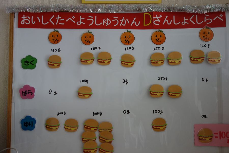 また、3歳以上児クラスでは、「美味しく食べよう週間」にて、残食調べをしました。