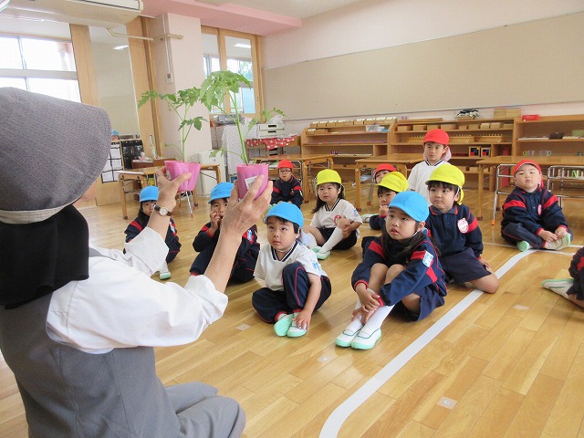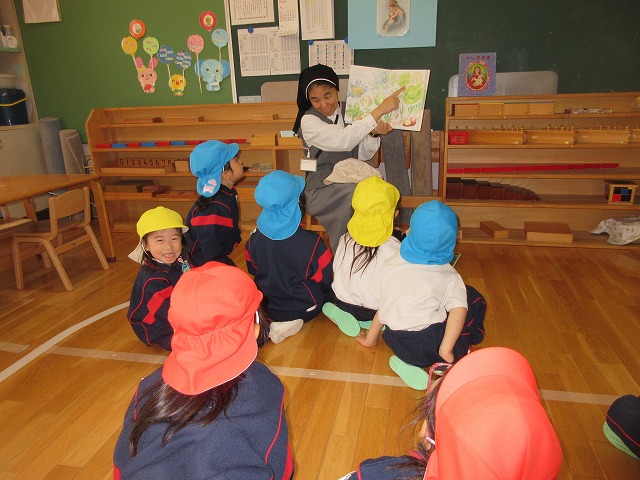 お遊戯室では、年中さん・年少さんがお祈りをしていました♡