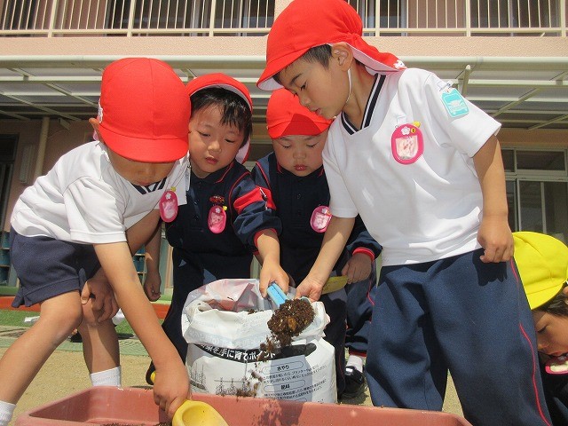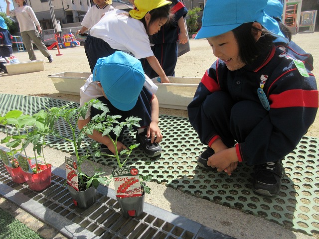 続いては苗を植えます。苗はやさしく触ってね(*^▽^*)