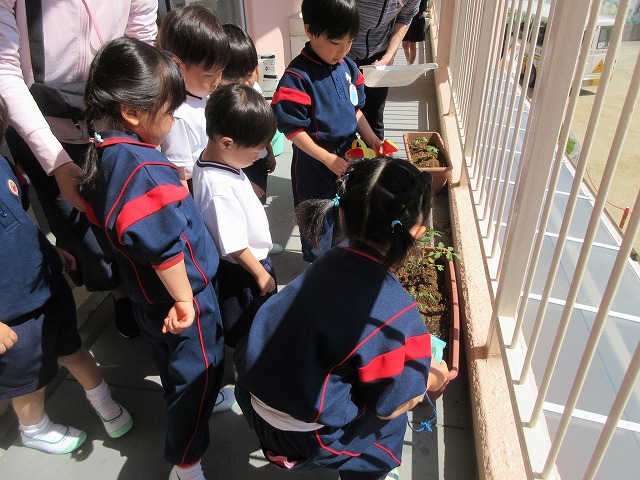水やりをして、おまじない!「大きくなぁれ!大きくなぁれ!」
