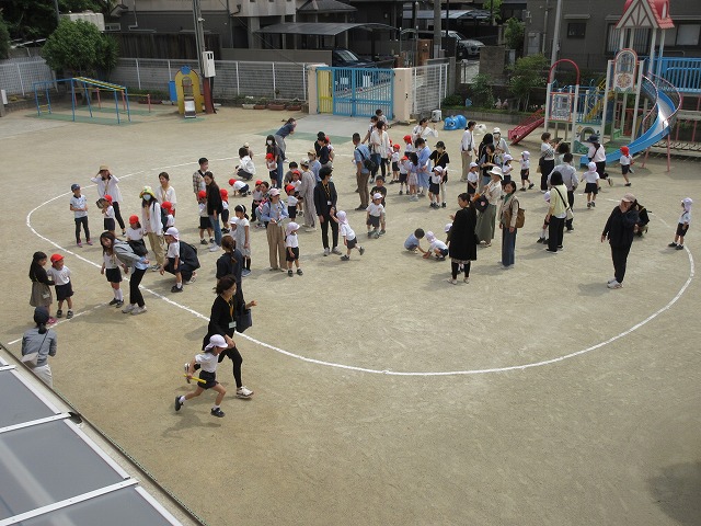 年中ばら組さんは園庭での活動でした!保護者の方と一緒にお祈りをして、外でのびのびと身体を動かし、親子ふれあい体操や親子リレーを楽しみましたね♪走るスピードが速くなった我が子に成長を感じながら楽しい時間を過ごす事ができましたね(*^-^*)