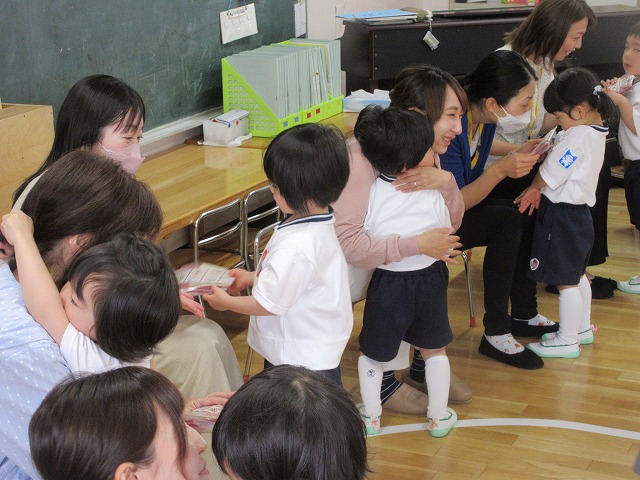 遊戯室で、親子で体操やゲームを楽しんだ後は、子どもたちから心のこもったプレゼントが贈られました♪