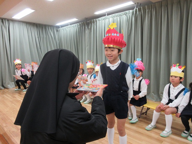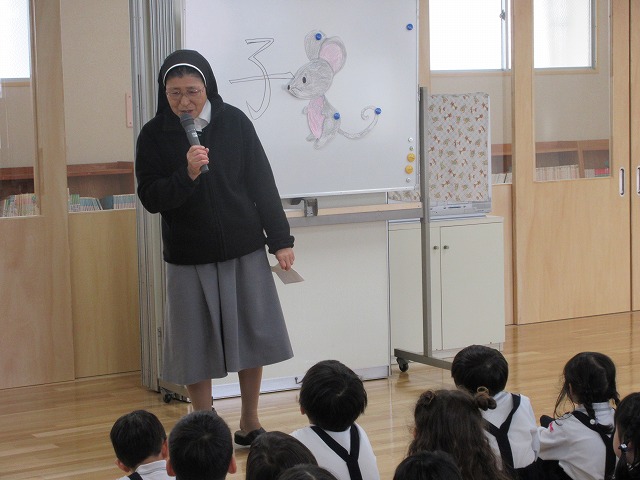 花田口聖母幼稚園も、3学期の始まりで園長先生のお話を聞きました。