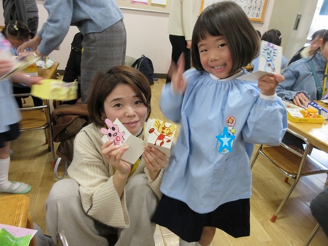 先生に教えてもらいながら、あやとりを真剣にやってます。