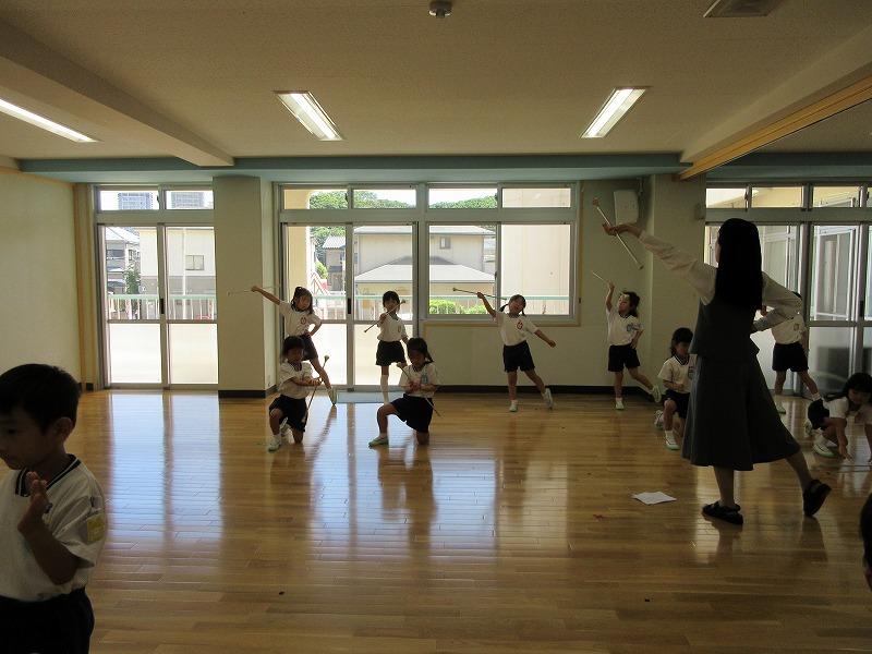 ゆりぐみさんは、マーチングの練習です。もうすぐ出来上がりそう・・。