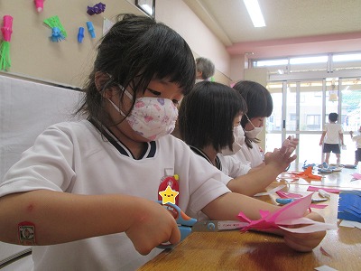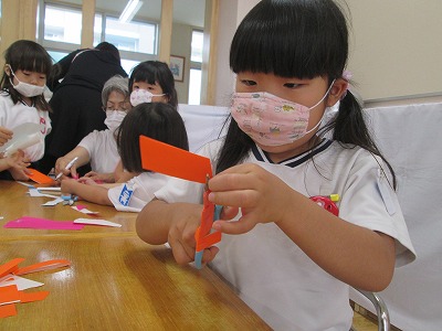 ハサミで切ったり、のりで貼ったりして、、、