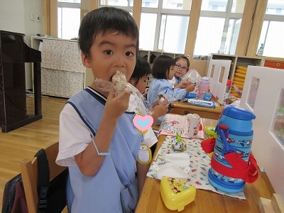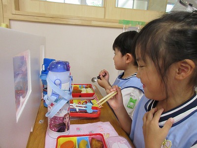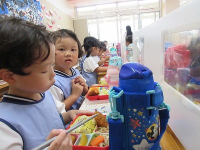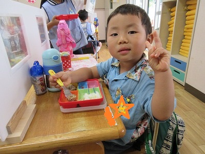完食する子も沢山でてきましたよ。満3歳の子も初めてのお弁当給食を
