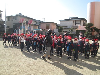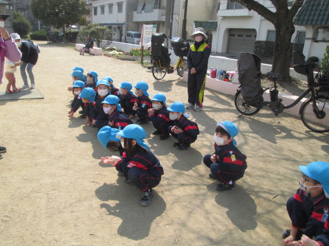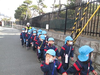 お友だちと手をつないでお約束を守ってしっかり歩きました。