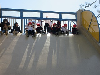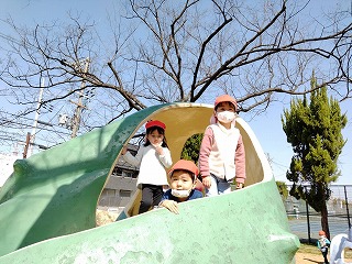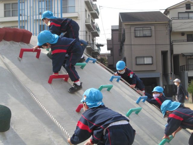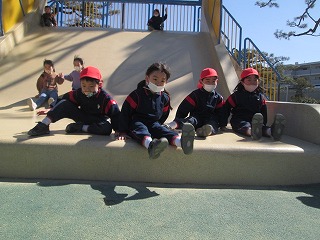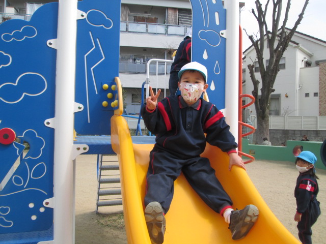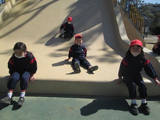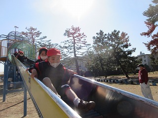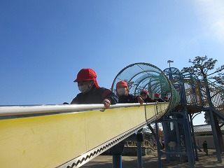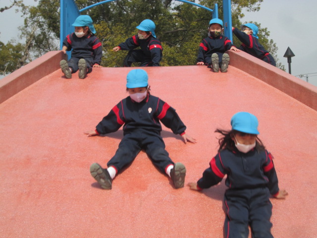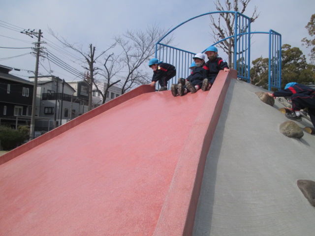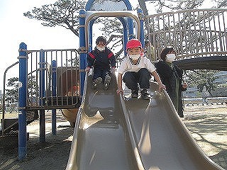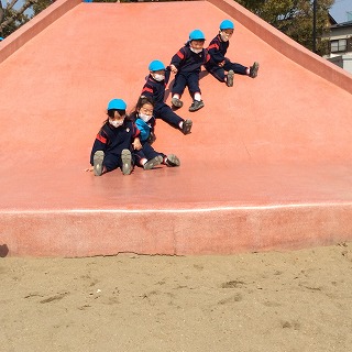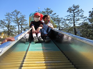 大きいすべり台は少し怖かったので、お友だちと手をつないで