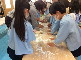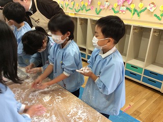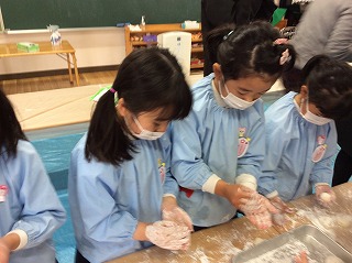 ゆり組さんはおもち丸めをしました。