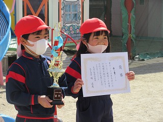 優勝したゆりB組さんに トロフィーと 表彰状が 渡されました!!