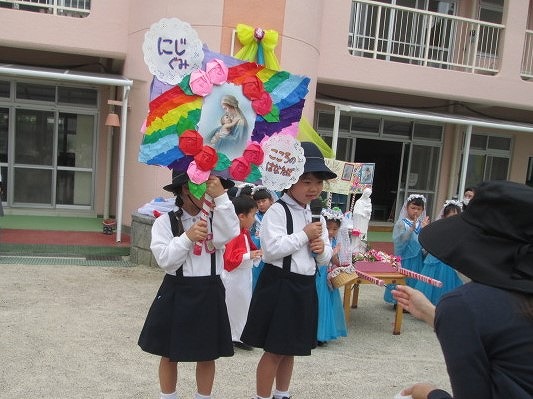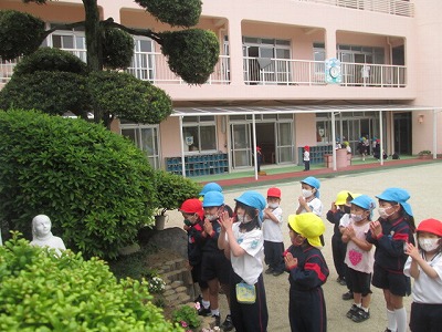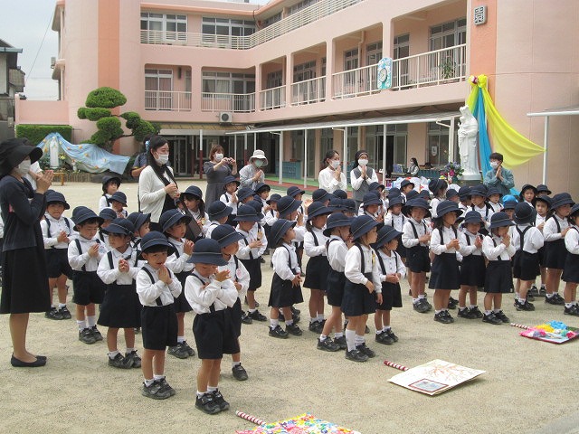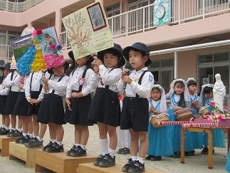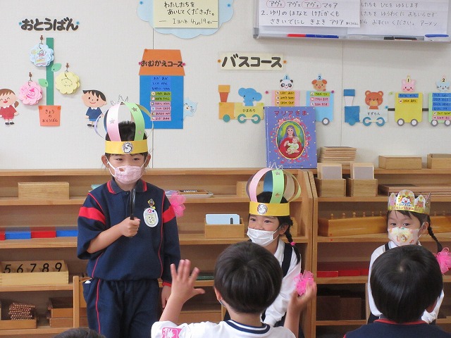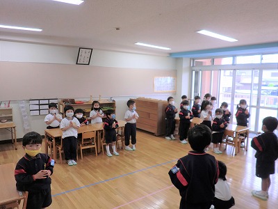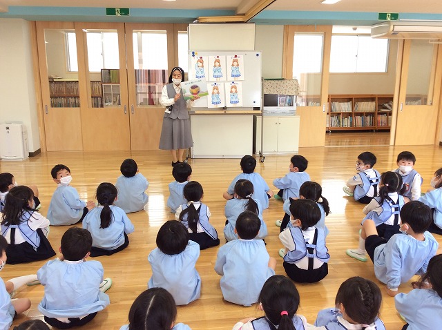 4月、進級して園長先生に、ばら組のお集まりをしていただきました。