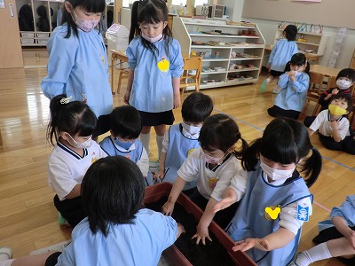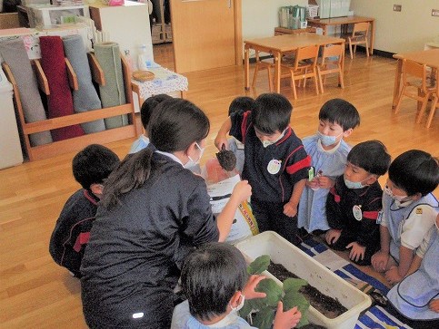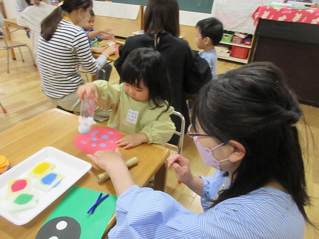 年少さんたちに優しく接したり、お世話を年長のお友だちと一緒にしてくれる姿がみられます(^^♪