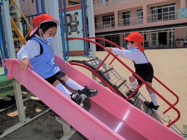 思い切り園庭を走ったり、身体を動かして遊ぶばら組の子どもたち、みんなお外が大好きです。