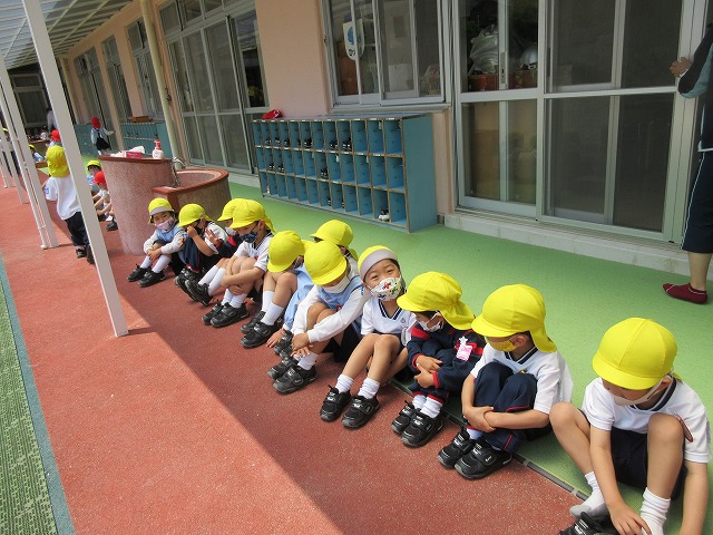 子どもたちは準備ができると、お山座りをして揃うのを待ちます。