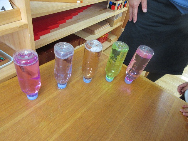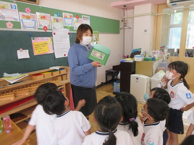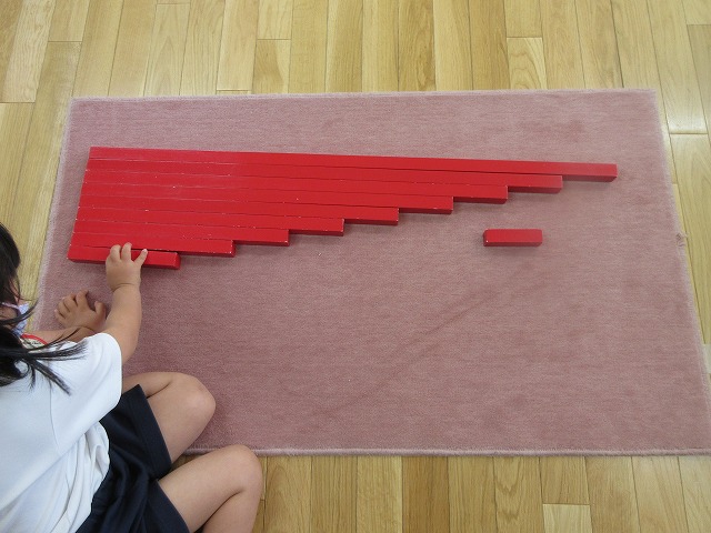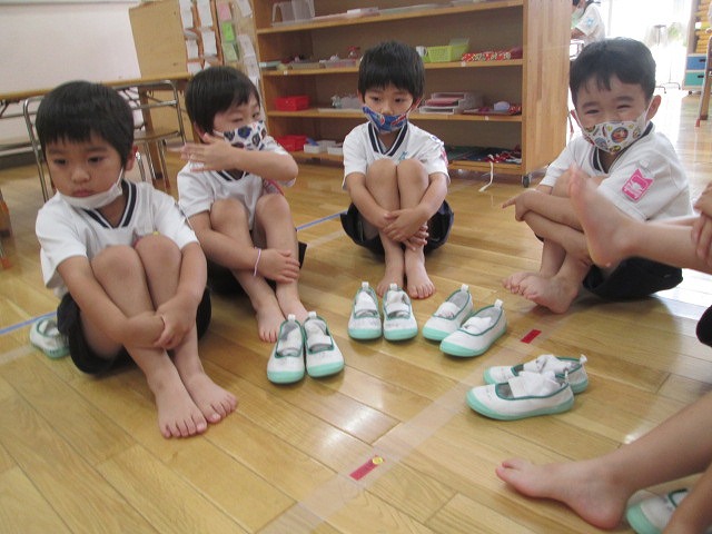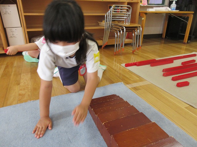 年長さん、年中さんたちは、教具の扱いにも慣れ、丁寧に実践していますね。