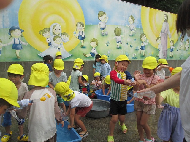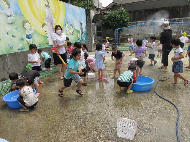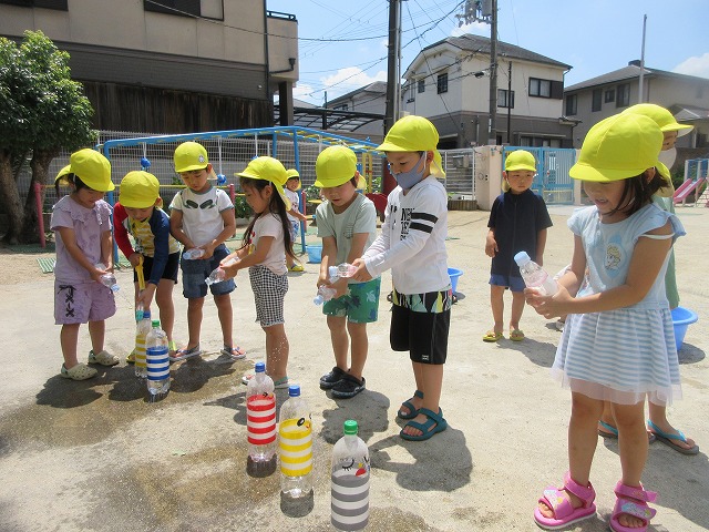 水あそびを楽しんで、いろんな広がりを見せてくれました。