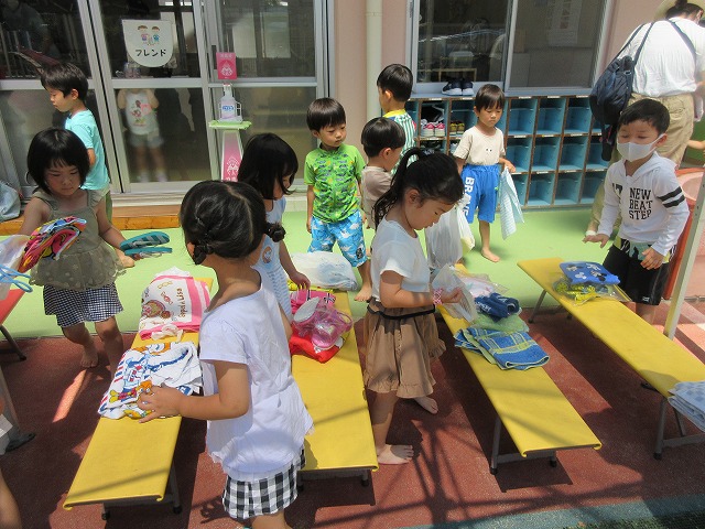 水あそびを前に、着脱の練習をして、準備万端です(≧▽≦)