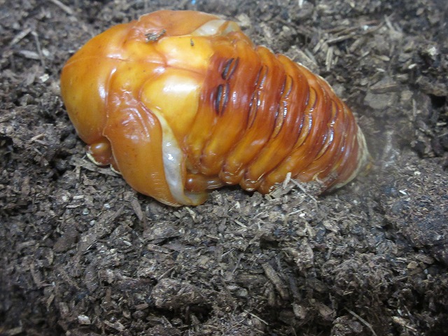 お友だちが持ってきてくれた、カブトムシの幼虫が、サナギになりました。子どもたちは、登園して幼虫の姿が変わっているのに「なんで?」や、「さなぎになってる!」など変化を喜び、言葉と態度で表してくれました。