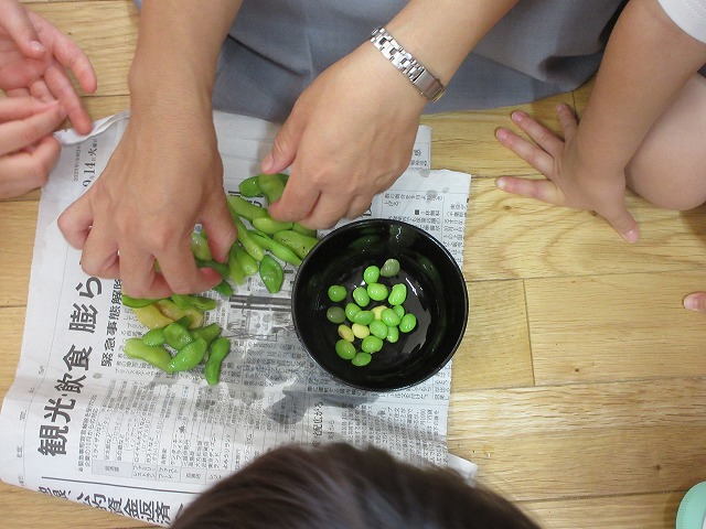 子どもたちと育てていた枝豆を収穫しました(*^▽^*)