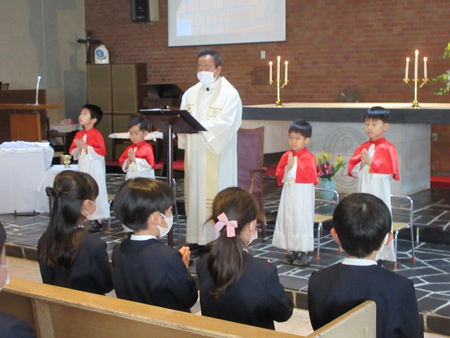 神父様のお話では、成長することの喜びを教えて頂きました!しっかりと 自分の役を こなしてくれた侍者のお友達!ありがとうございました!(^^)!