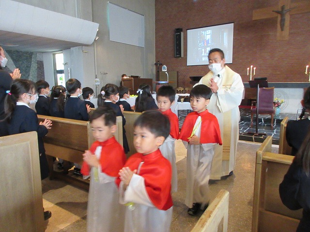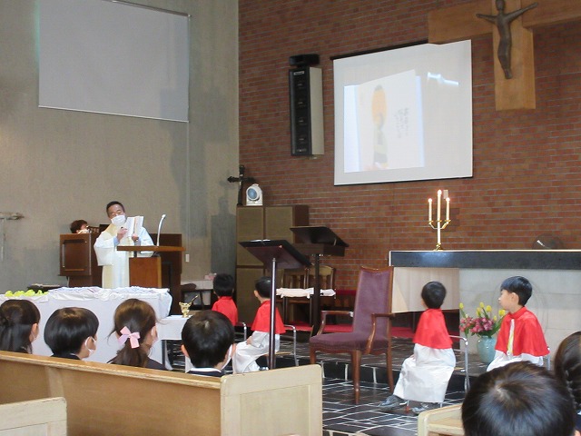 共同祈願では、お友達・お母様・先生のお祈りを、神様にお捧げしました♡